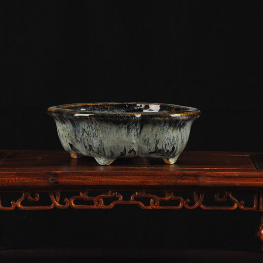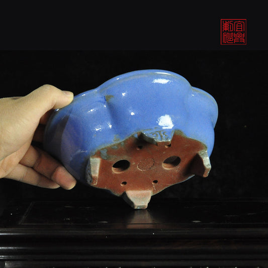 Hand-painted blue and white papaya glaze pot handmadepot bonsaipot